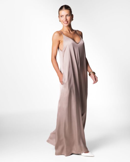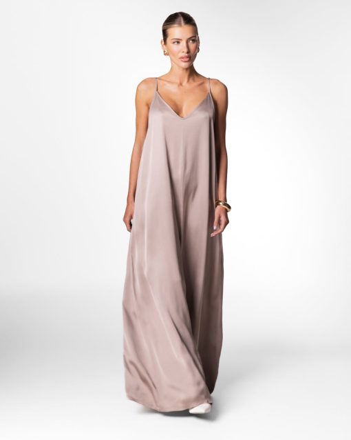 JAKI Women’s Audrey Satin Jumpsuit | Mocha