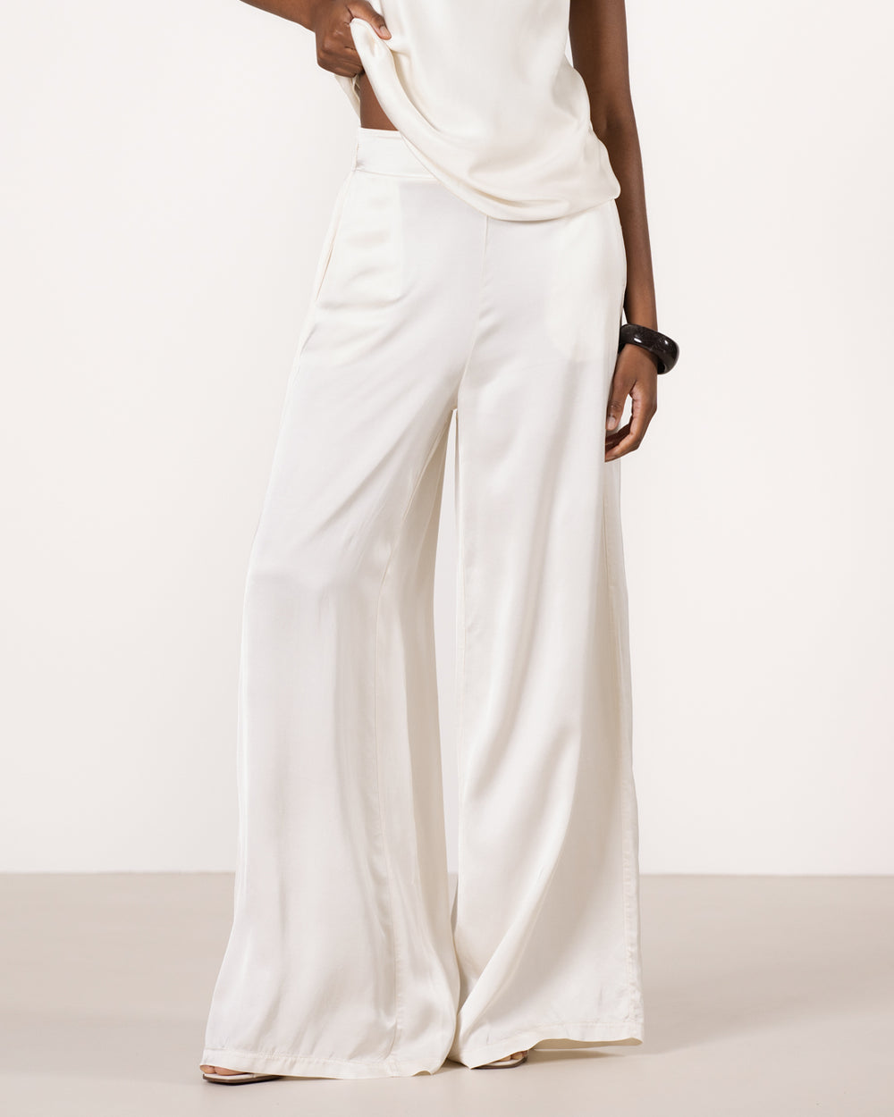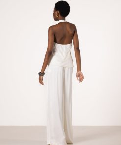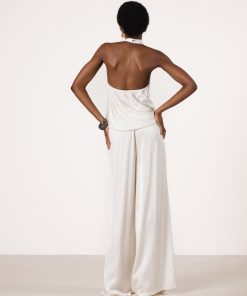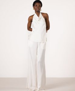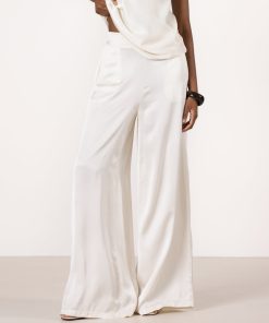 JAKI Women’s Giselle Elastic High Waist Satin Trousers | Ivory